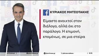 Το μήνυμα του Κυριάκου Μητσοτάκη για του αγρότεςΔιάρκεια: | Ημερ. Καταχώρησης: Σήμερα 13:26Νέο μήνυμα στους αγρότες που παραμένουν στα μπλόκα, να προσέλθουν σε διάλογο με την κυβέρνηση, στέλνει ο Κυριάκος Μητσοτάκης μέσω της καθιερωμένης κυριακάτικης ανάρτησής του.