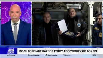Διάρκεια: | Ημερ. Καταχώρησης: Σήμερα 13:35Εκτόξευση τορπίλης βαρέως τύπου από υποβρύχιο πραγματοποίησε το Πολεμικό Ναυτικό, παρουσία του υπουργού Εθνικής Άμυνας Νίκου Δένδια.